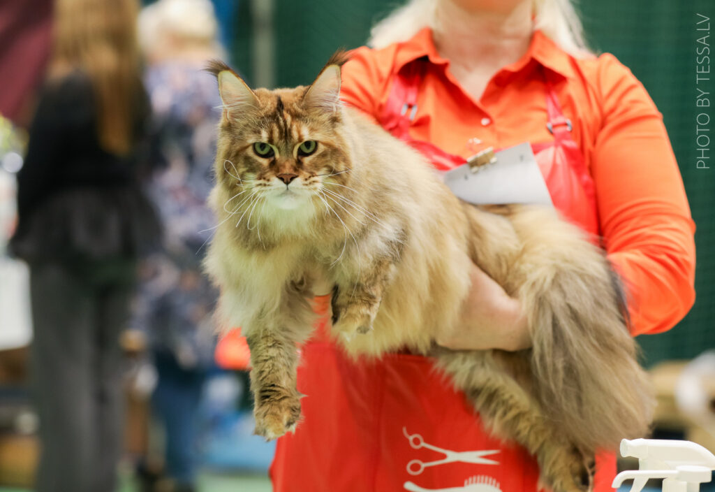 Maine Coons are called “gentle giants”. They are sweet tempered and gentle despite their size and looks. Maine Coon is typically a “silent” breed, though they communicate a lot with their human and cat family with various chirping sounds. Being extroverted, happy, playful and loyal, they are a real companion and family member.
